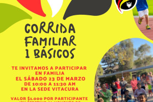 La comisión de deportes invita a todos los alumnos del nivel 1° básico y sus familias a una entretenida actividad en la sede Vitacura donde realizaremos una corrida por el interior de ésta. Será una instancia donde podremos conocer el colegio, compartir entre las familias, papás, mamás, abuelos, hermanos y pasar un entretenida mañana deportiva.