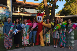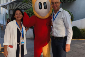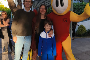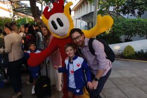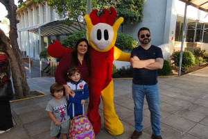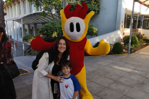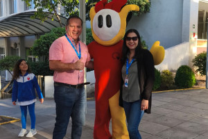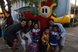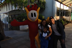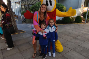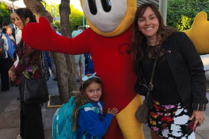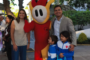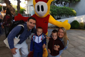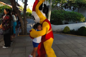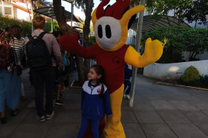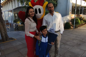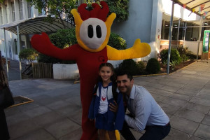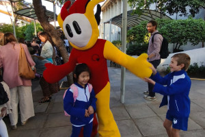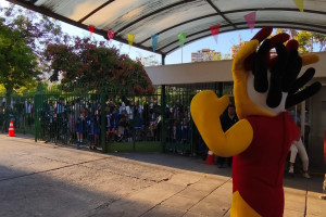 Una cordial bienvenida entrego nuestro amigo en la entrada a todos los niños, niñas y familias del Colegio Alemán.